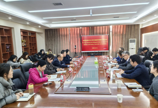 2025年12月17日,郑州大学国际交流与合作处处长吴军超、政治与公共管理学院院长、党委副书记孙远太、党委副书记李润玮、副院长马润凡、丁辉侠,学院教师、学生代表等与英国约克大学商业与社会学院柴红霞教授、Neil Lunt教授、Slobodan Tomic博士、KieT Duong博士一行举行会谈。双方就深化国际交流合作进行了务实会谈。