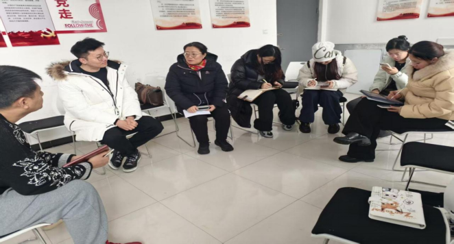 随后,团队与社区主任兼书记关欣展开座谈。关书记介绍,社区现有居民4000余户,其中60岁以上老人约800户,社区创新推行“蜂巢养老”模式,通过志愿者参与、适老化改造与第三方服务嵌入等方式构建支持网络,但也面临场地、人力与资金等现实挑战。双方围绕寒假实习实训、服务模式优化等展开讨论。蒋美华教授强调社会工作应推动服务向专业化转型,刘继文老师则鼓励学生通过实务学习助力社区服务提质。