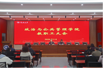 为深入贯彻落实新时代高等教育高质量发展要求,推动新学期学院各项工作的顺利开展,3月12日下午,政治与公共管理学院召开2026年春季学期全体教职工大会。学院党委书记于建军主持会议,院长、党委副书记孙远太,党委副书记、纪委书记陈文新,党委副书记李润玮,副院长马润凡、陈宁及全体教职工参加会议。
