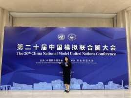 在学术科研的道路上,冉艺果展现出浓厚的兴趣和潜力。在导师的悉心指导下,她作为核心成员参与第十九届“挑战杯”大学生课外学术科技作品竞赛,与团队齐心协力,最终斩获省级二等奖。作为一名国际政治专业的学生,她深知理论联系实践的重要性,积极投身专业实践活动,代表郑州大学参加第二十届中国模拟联合国大会,“首届青年学子研学营”等,与全国各高校学子交流切磋,以全球视野思考问题,展现了国政学子“从中国看世界”的胸怀与担当。