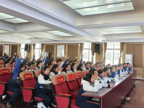 图为王怡在巴里坤县第一中学宣讲