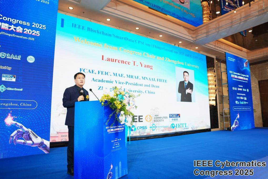 10月30日—11月2日,“2025年IEEE国际人机物智能大会(The 2025 IEEE Cybermatics Congress)”在郑州举办。本次大会由郑州大学计算机与人工智能学院联合国际电气与电子工程师协会(IEEE)、计算机协会(IEEE CS)和可扩展计算技术委员会(IEEE TCSC)共同承办。郑州大学学术副校长杨天若担任大会主席,来自清华大学、北京大学、南方科技大学、北京交通大学、郑州大学、加拿大麦克马斯特大学、日本会津大学、意大利萨勒诺大学等70余所国内外高校、科研院所和知名企业的300余名专家学者及师生参加会议。