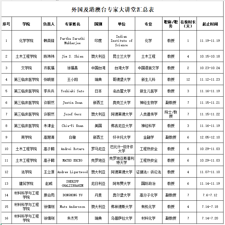 经个人申请、单位审核推荐,学校组织评议,拟将韩英锋等13位同志申报的16个项目列入第五批“外国及港澳台专家大讲堂支持计划”资助对象,现将名单公布如下,请获批项目负责人及时执行。
