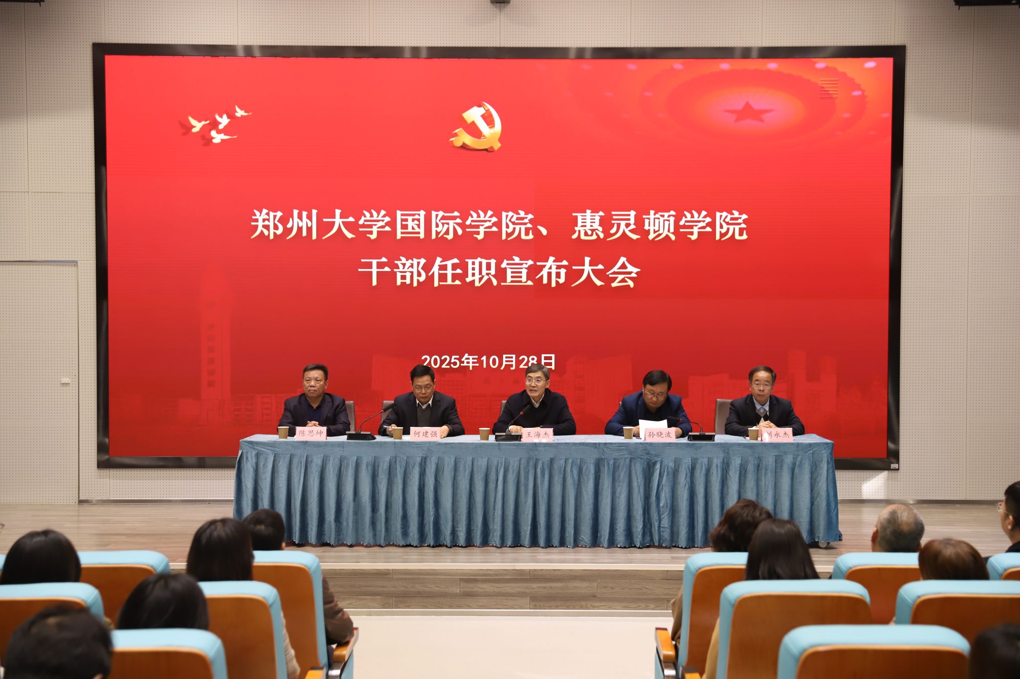 10月28下午,学院于惠灵顿学院205报告厅召开郑州大学国际学院、惠灵顿学院干部任职宣布大会,校党委常委、副校长王海杰,人事部副部长、党委人才办公室主任兼党委组织部副部长孙晓波,党委组织部干部监督工作主管蔡付兵出席会议,学院全体教职工参会。