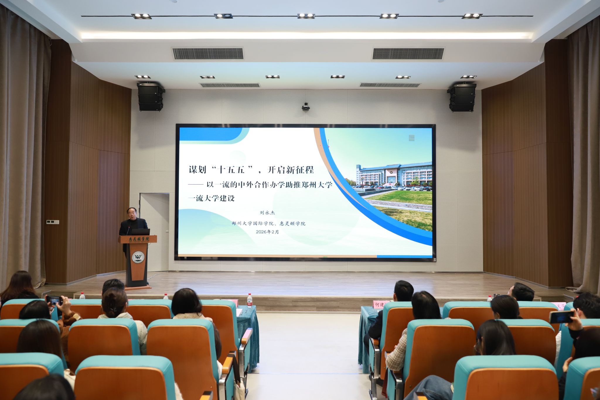 学院执行院长刘永杰作题为《谋划“十五五”,开启新征程——以一流的中外合作办学助推郑州大学一流大学建设》的工作报告。报告全面回顾了学院2025年工作成效,系统总结了“十四五”时期在党建引领、办学层次、人才培养、国际交流、学科建设等方面取得的突破性进展,深入分析了当前面临的机遇与挑战。立足学院“十五五”开局关键节点,报告明确了未来发展的总体思路与改革举措,重点聚焦机构建设、层次提升、师资引育、科创育人、国际交流等方向,加快打造高水平中外合作办学示范阵地。同时,对学院2026年重点工作作出具体部署,强调要以“开放融合”为抓手,深化党建与业务深度融合,推进办学提质升级,建设国际化师资与人才引进的桥头堡,强化人才培养核心地位,完善学生管理服务体系,确保年度各项目标任务落地见效,扎实推进中外合作办学各项工作,为郑州大学加快建设世界一流大学贡献更大力量。