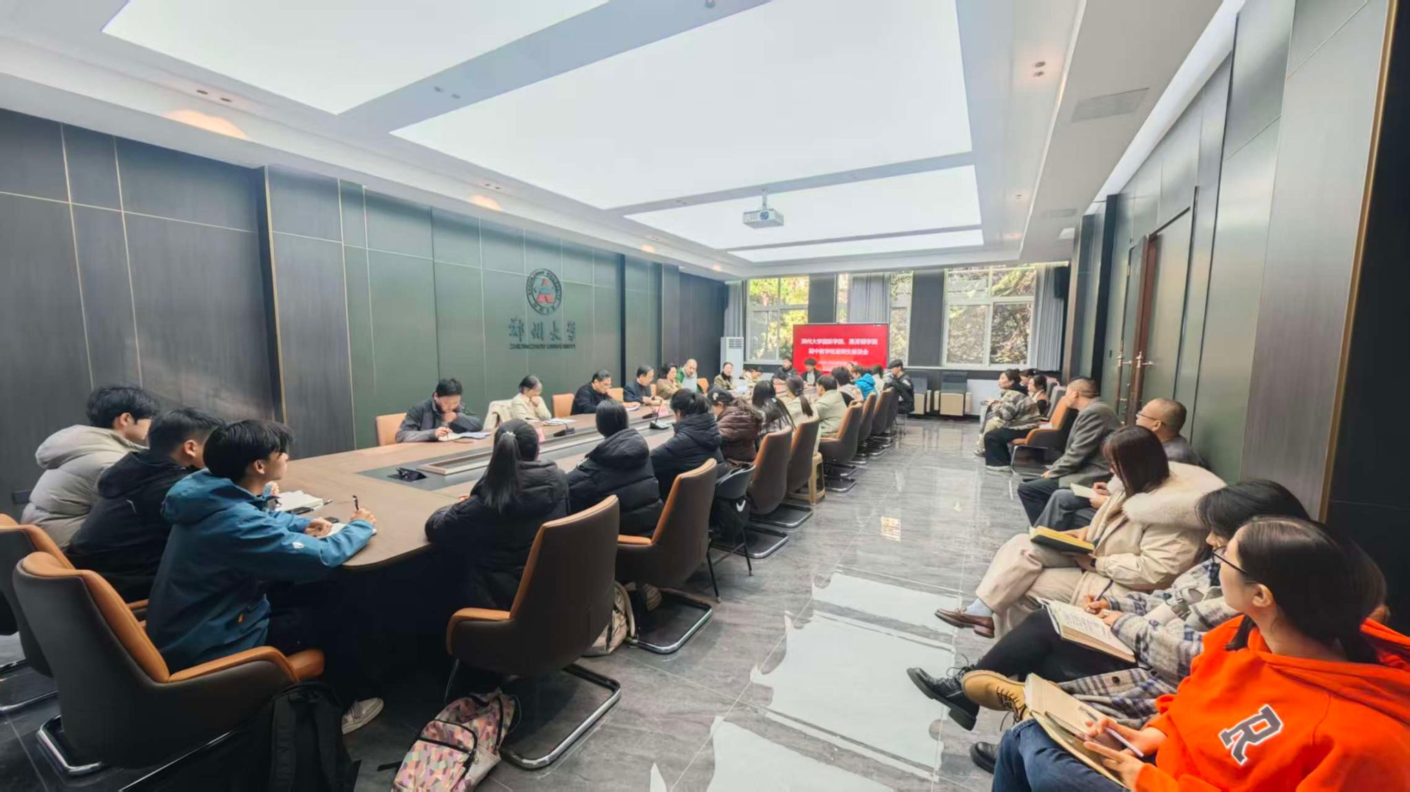 11月19日上午,国际学院、惠灵顿学院在南校区教1楼第一会议室召开2025-2026学年第一学期期中教学检查师生座谈会。国际学院、惠灵顿学院执行院长刘永杰、副院长余义芳出席会议,教师代表、教学办公室及实验室管理中心工作人员、学生代表参加会议。会议由教学工作高级主管张向阳主持。