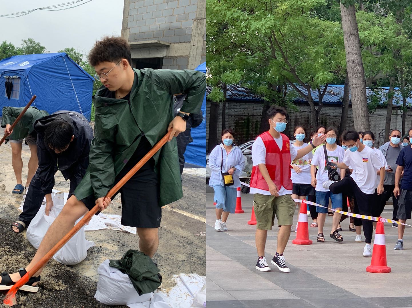 在这些志愿者中,很多同学也都参与了防汛救灾和灾后重建工作。在汛情过去之后他们又很快投身到了抗疫事业当中。他们身上有着国际学院学子们标志性的为国为民的责任感,让人感动不已。