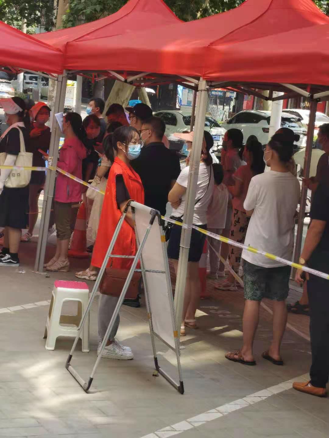 2019级材料科学与工程专业的谢佳在8月6日郑州市金水区第二轮核酸检测中,于文化路街道文丰社区经七路锦江之星检测点参与志愿活动,在维护现场秩序的同时,耐心地指导社区居民检测扫码,安抚排队群众的情绪。