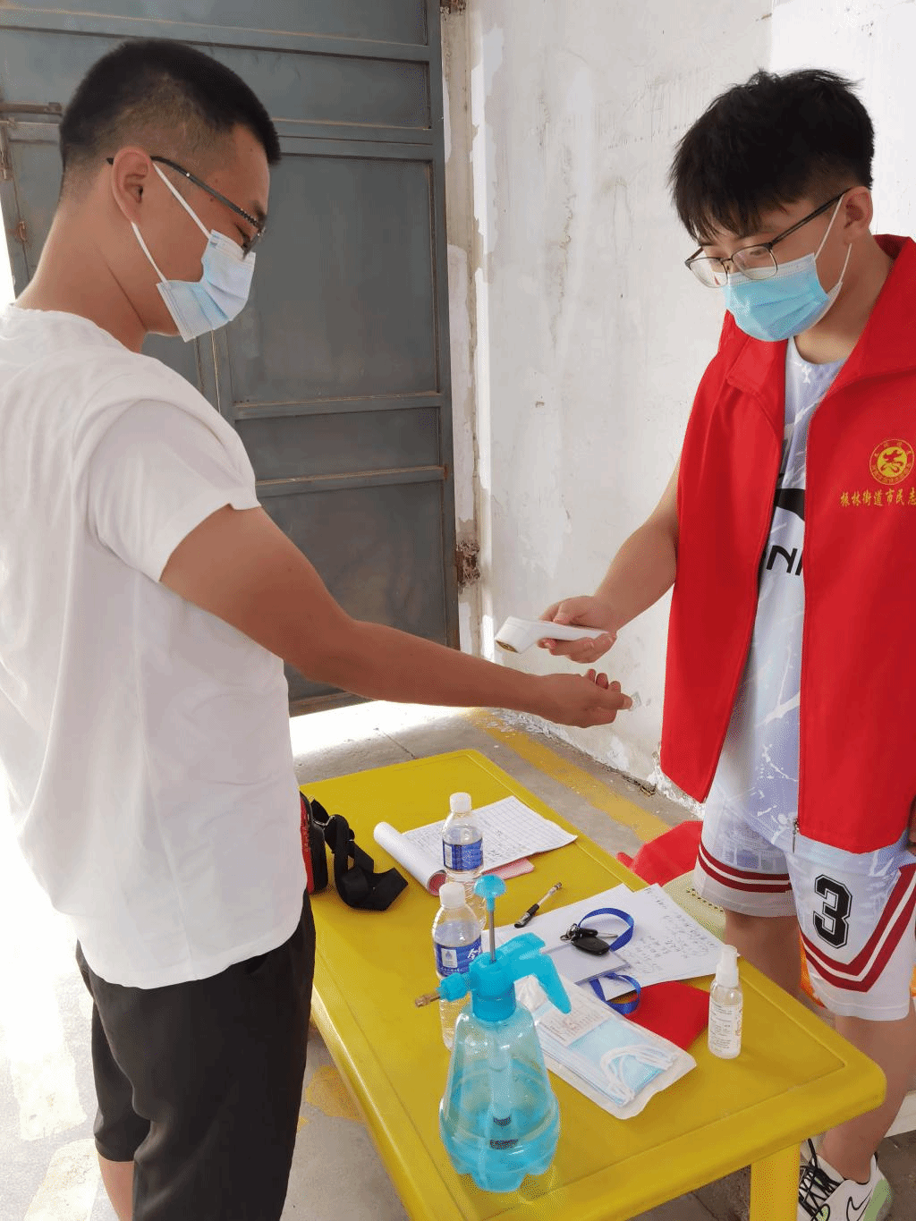 2020级法学专业的段栋文积极响应乡政府的号召,主动向社区报到,烈日炎炎之下驻守在所分配的小区门口,对进出车辆进行登记盘查,同时为进出人员进行信息登记,量体温并检查双码。在接到市里的紧急通知后,又连夜逐户排查社区居民的健康码和行程码。