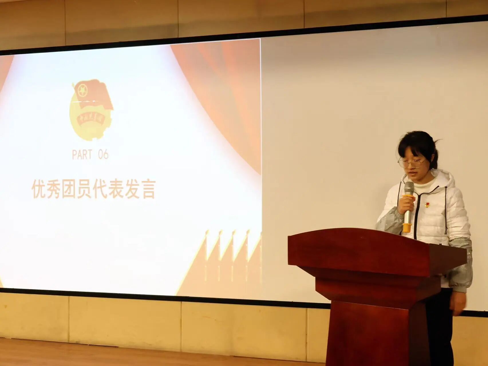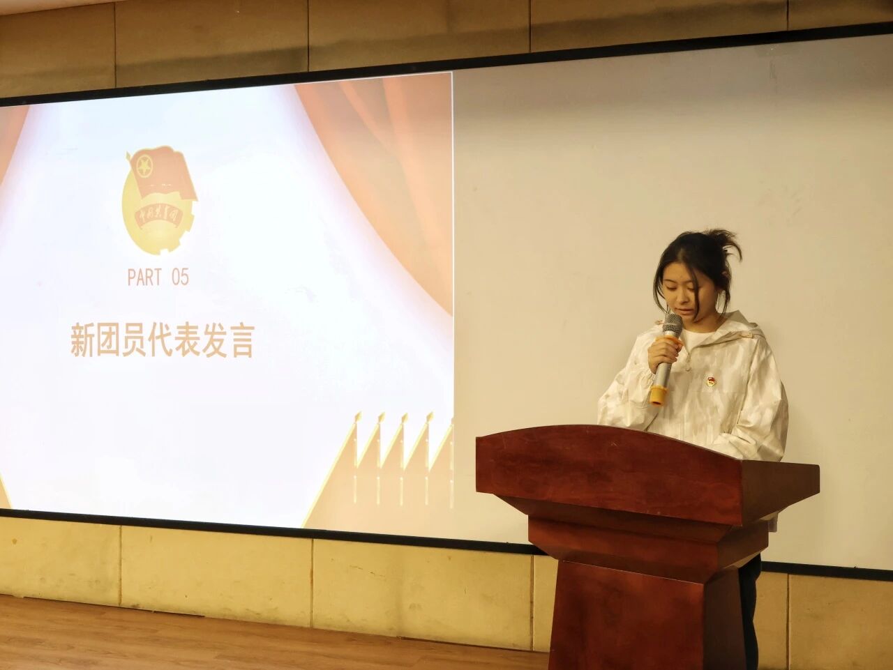 新团员代表李宛桐在发言中表示,加入共青团不仅是荣誉,更是与“十五五”规划同频共振的青春责任,她代表全体新团员承诺将坚定理想信念,勤学善思笃行,勇于担当作为,锤炼品德修为。优秀团员代表刘芙语分享经验,鼓励新团员铸牢政治忠诚,主动挺膺担当,锤炼过硬本领,坚持从严律己。