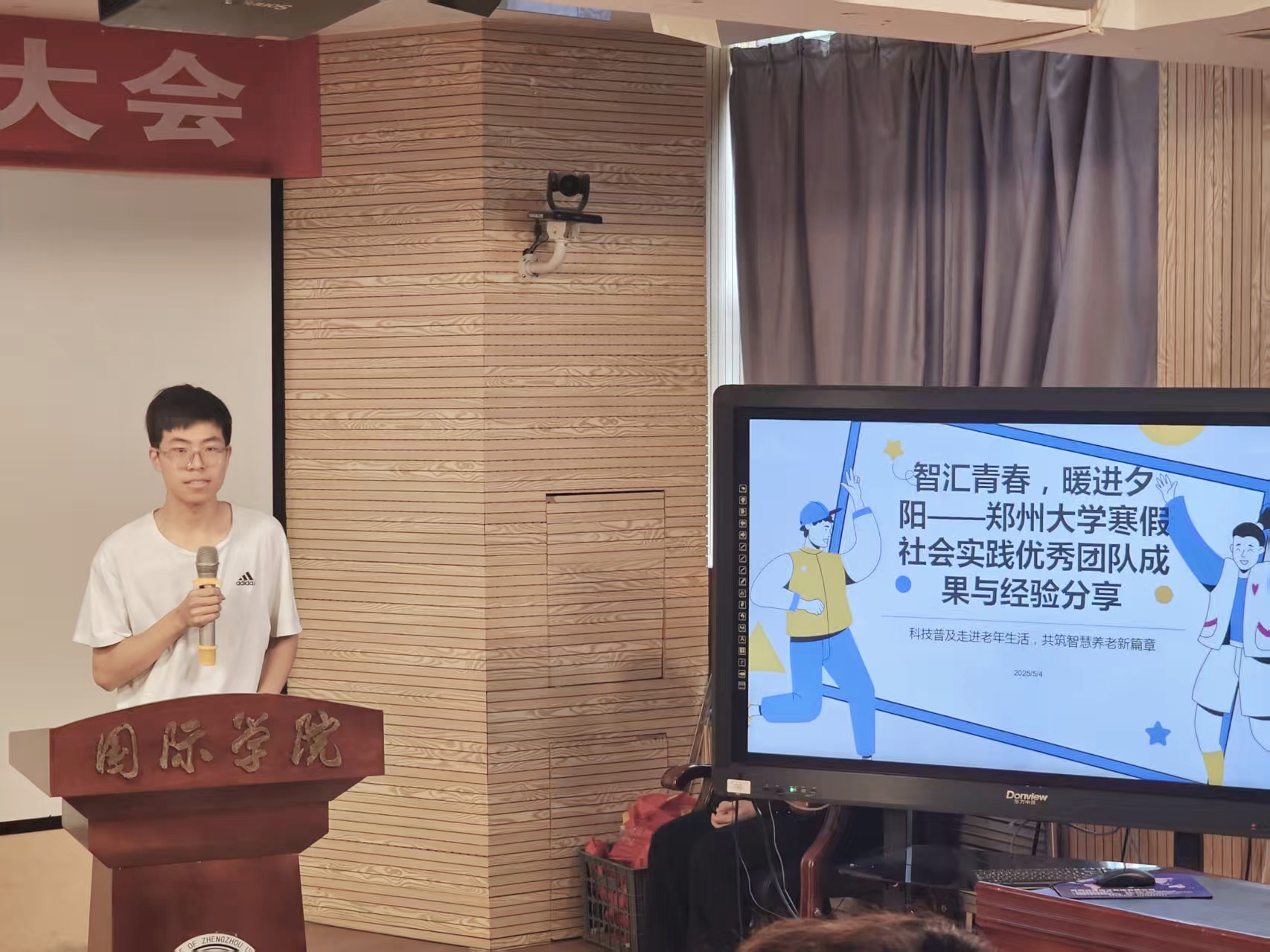 5月15日,国际学院召开2025年寒假社会实践表彰大会。国际学院团委书记郜蕾、学院招生就业办公室高级主管田申出席会议,2024级各专业团支书和各团队学生代表参加会议。