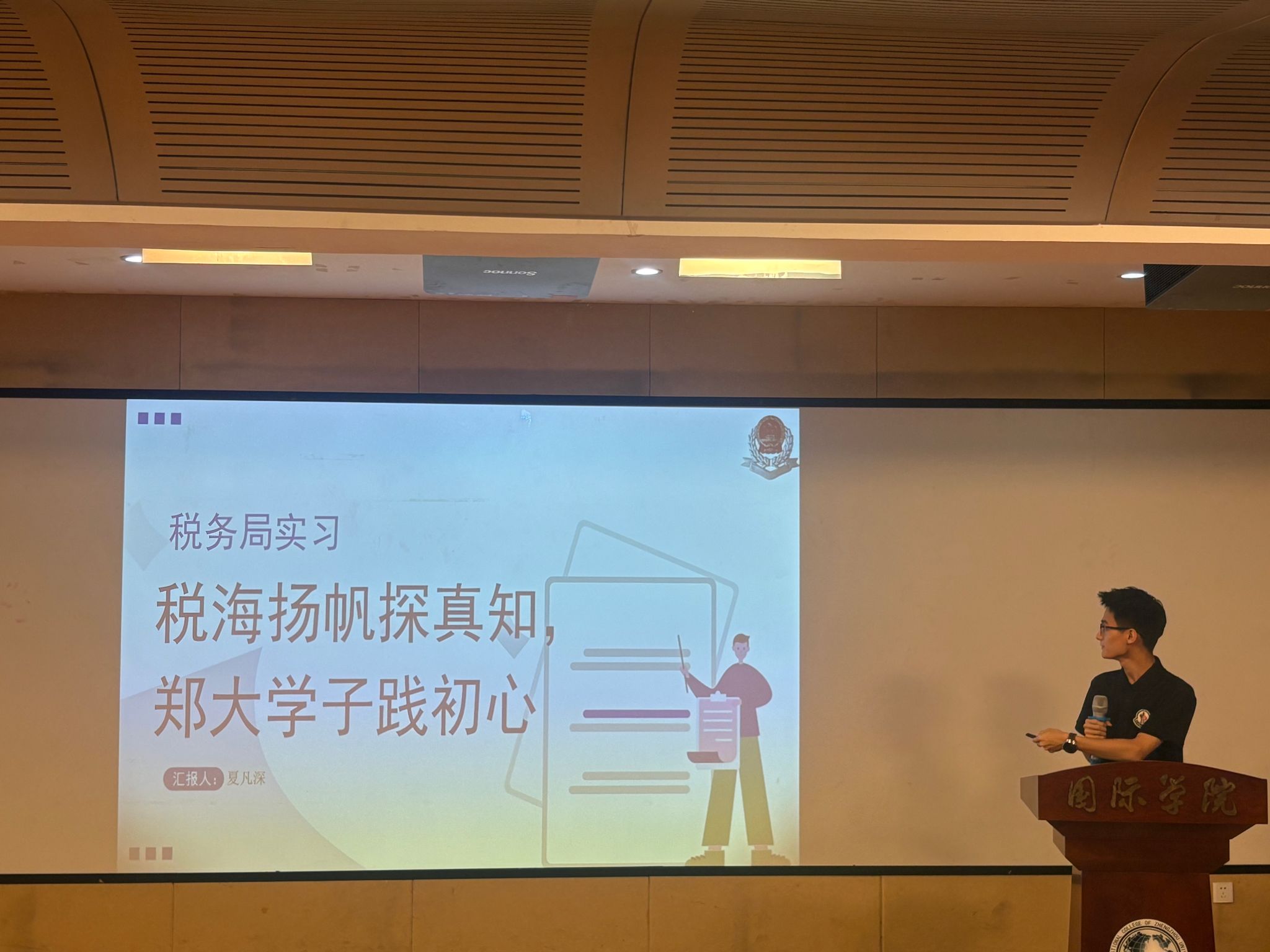 图5.“税海扬帆探真知,郑大学子践真心” 团队代表发言