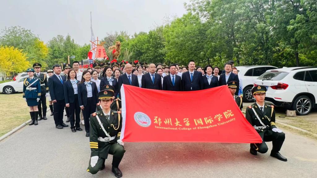 图2.2023年郑州大学阳光体育运动会领导与国旗护卫队合影