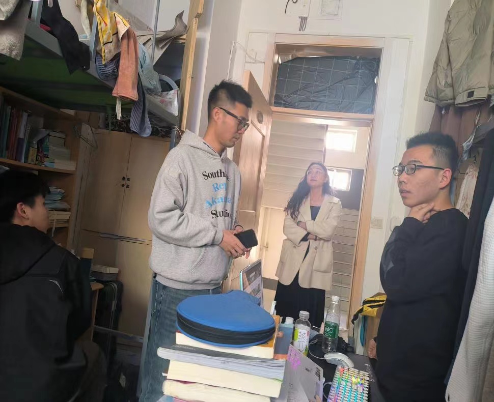 辅导员老师们对宿舍卫生进行了全面的检查并详细了解同学们的近况,询问同学们有无学习和生活上的困难。叮嘱同学们每天开窗通风,养成良好的生活习惯,增强个人防护意识和保持公共卫生。同时也对宿舍安全隐患进行了逐一排查,不放过任何一个漏洞,不留下任何一个隐患。