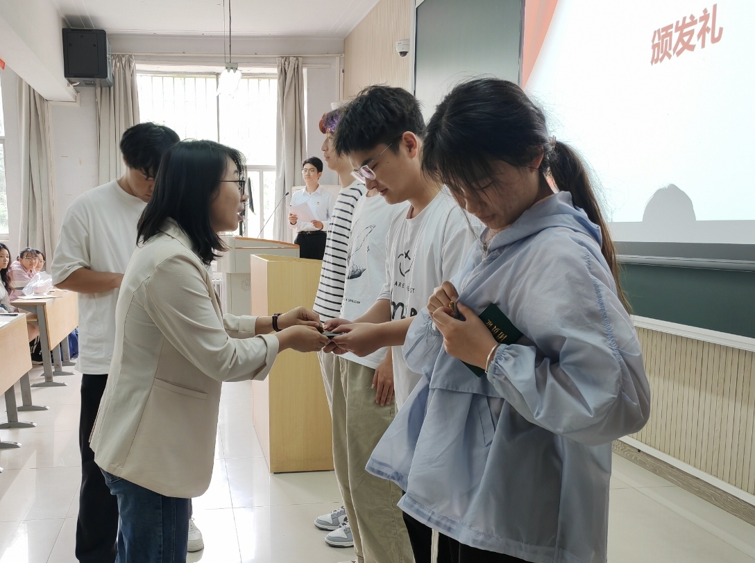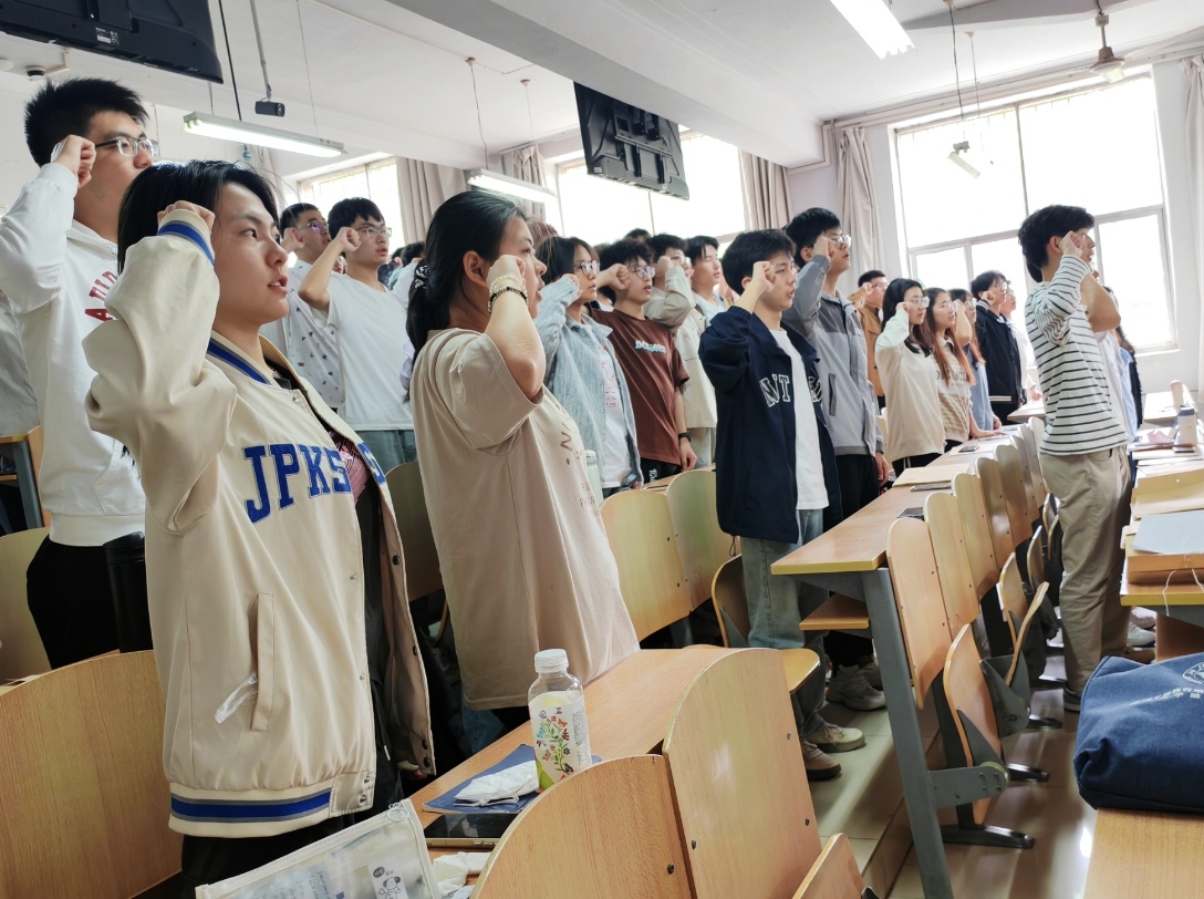 在同学们热烈的掌声中,学院团委书记郜蕾为新团员代表颁发了团徽及团员证。随后,在优秀团员代表带领下,新团员们高举右拳,以饱满的热情和坚定的信念,面向团旗庄严宣誓,表达了为共产主义事业奋斗的决心。团旗下宣誓不仅代表着新团员们已经加入了团组织、成为一名光荣的共青团员,也激励着新团员们树立团员意识和自觉,坚定不移听党话、跟党走,真正做到思想上入团、行动上入团、组织上入团。