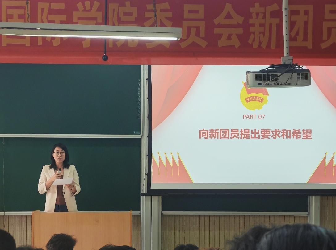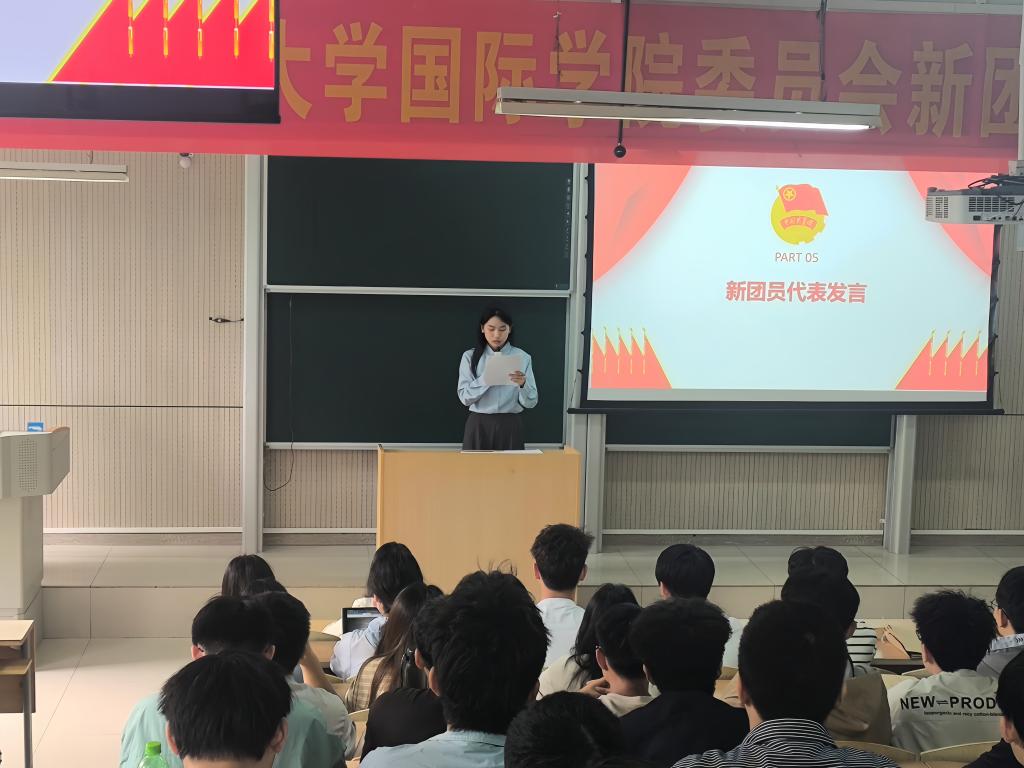 为深入学习贯彻习近平总书记关于青年工作的重要思想,不断加强共青团队伍建设,激励团员和青年坚定信念、积极进取,国际学院团委于4月29日在14号楼218室举办了新发展团员入团仪式。国际学院团委书记郜蕾出席此次仪式,优秀团员代表及2023-2024学年新发展的100名团员青年参加了本次仪式。