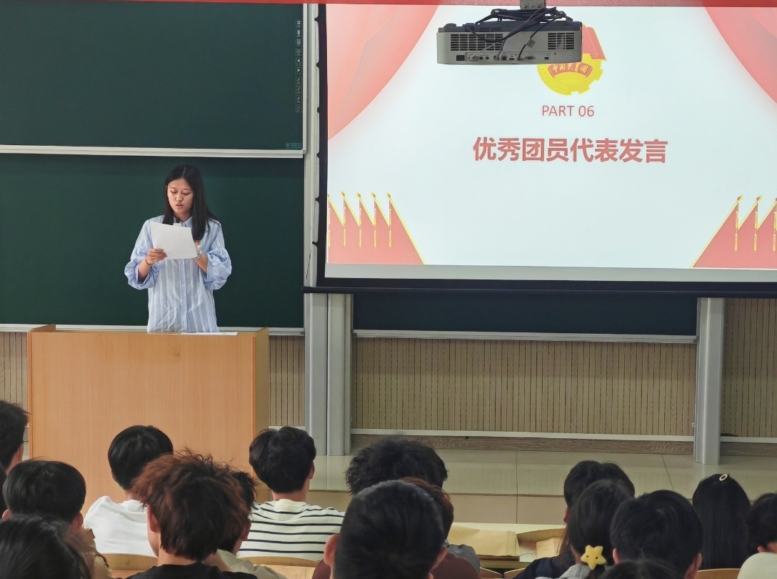 优秀团员王琳璐代表随后进行发言,强调入团不仅是形式上的加入,更应以实际行动践行“请党放心,强国有我”的宣言,为实现中国梦贡献青春力量。优秀团员的发言,如同春风化雨,激发了在场所有新团员的责任感和使命感。
