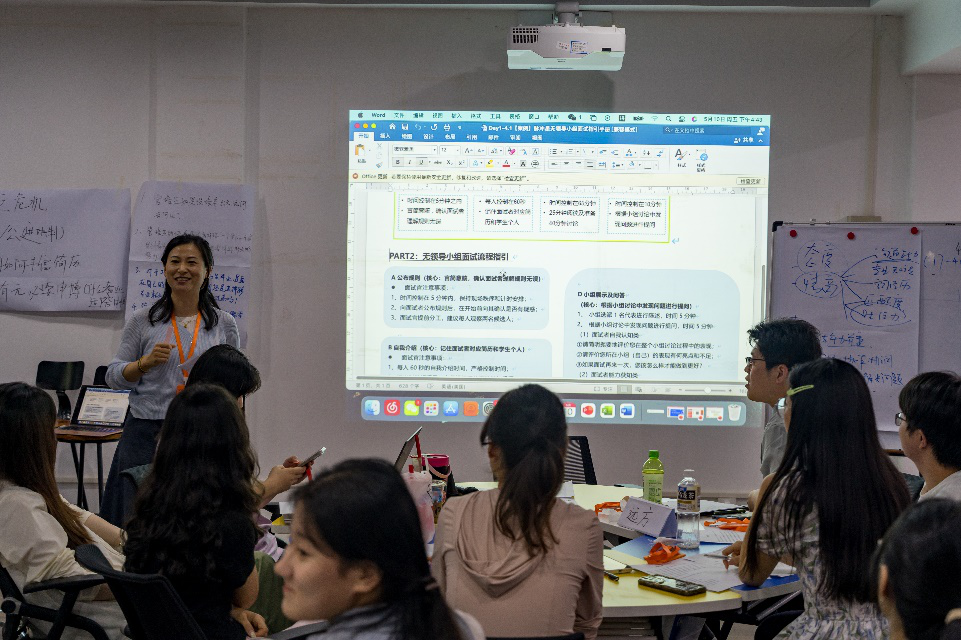 在讲解完理论知识后,东方雨虹河南区域HR负责人马欣老师组织在场同学进行模拟面试,并从面试官与求职者的双视角出发,讲解求职技巧。马老师首先将同学们分为多个小组展开沉浸式的无领导小组面试,同学们分工协作、积极发言,在实战中锻炼沟通表达能力。面试结束后,她针对同学们在群面中的表现进行点评,并从面试官的角度详细介绍了面试的规范流程、注意事项和评分标准。