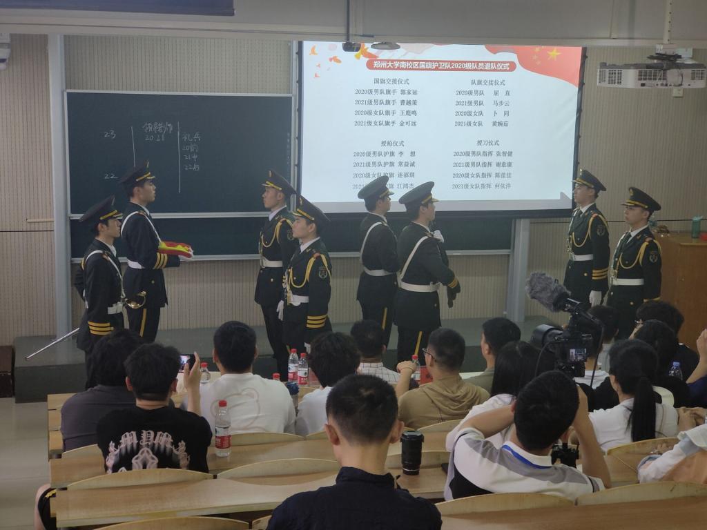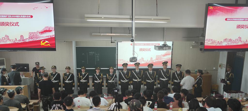 为传承国旗护卫队的精神和使命,记录队员们的荣誉与成长,郑州大学南校区国旗护卫队于5月12日在14号楼321教室隆重举行退队仪式。郑州大学武装部教员张威、南校区国旗护卫队指导老师郭仲晗出席仪式,南校区国旗护卫队全体队员参加了本次大会。