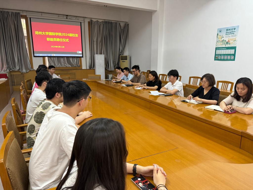 6月11日上午,国际学院2024届校友联络员聘任仪式在南校区办公楼第一会议室隆重举行。学院党委副书记庄琼琼出席仪式并讲话,院学生工作办公室负责老师、毕业班全体辅导员、学院招生与就业指导办公室负责老师及2024届校友联络员参加此次仪式。聘任仪式由学生工作办公室负责老师主持。