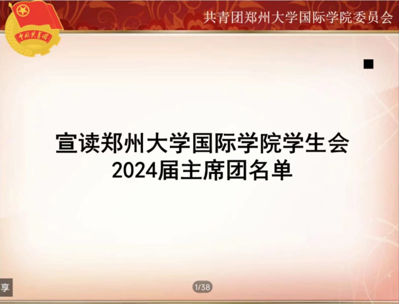 图5.郭鸽老师宣布国际学院2024届学生会主席团成员名单