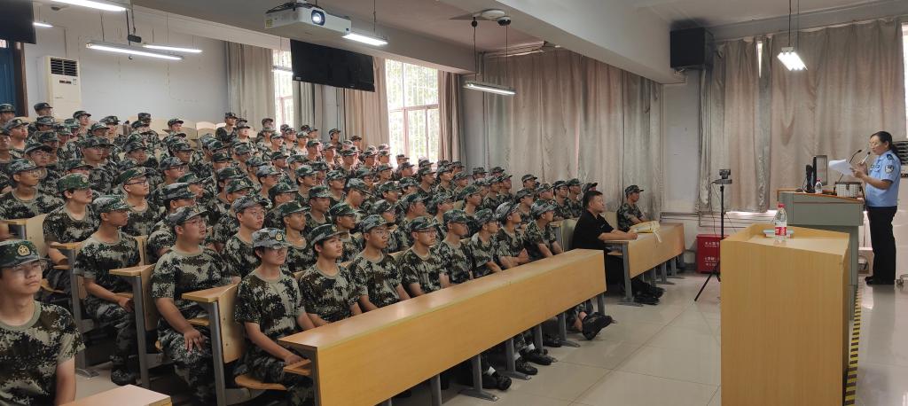 图1.郑州市公安局二七分局大学路派出所张玉苹警官为我院新生作防诈骗主题讲座