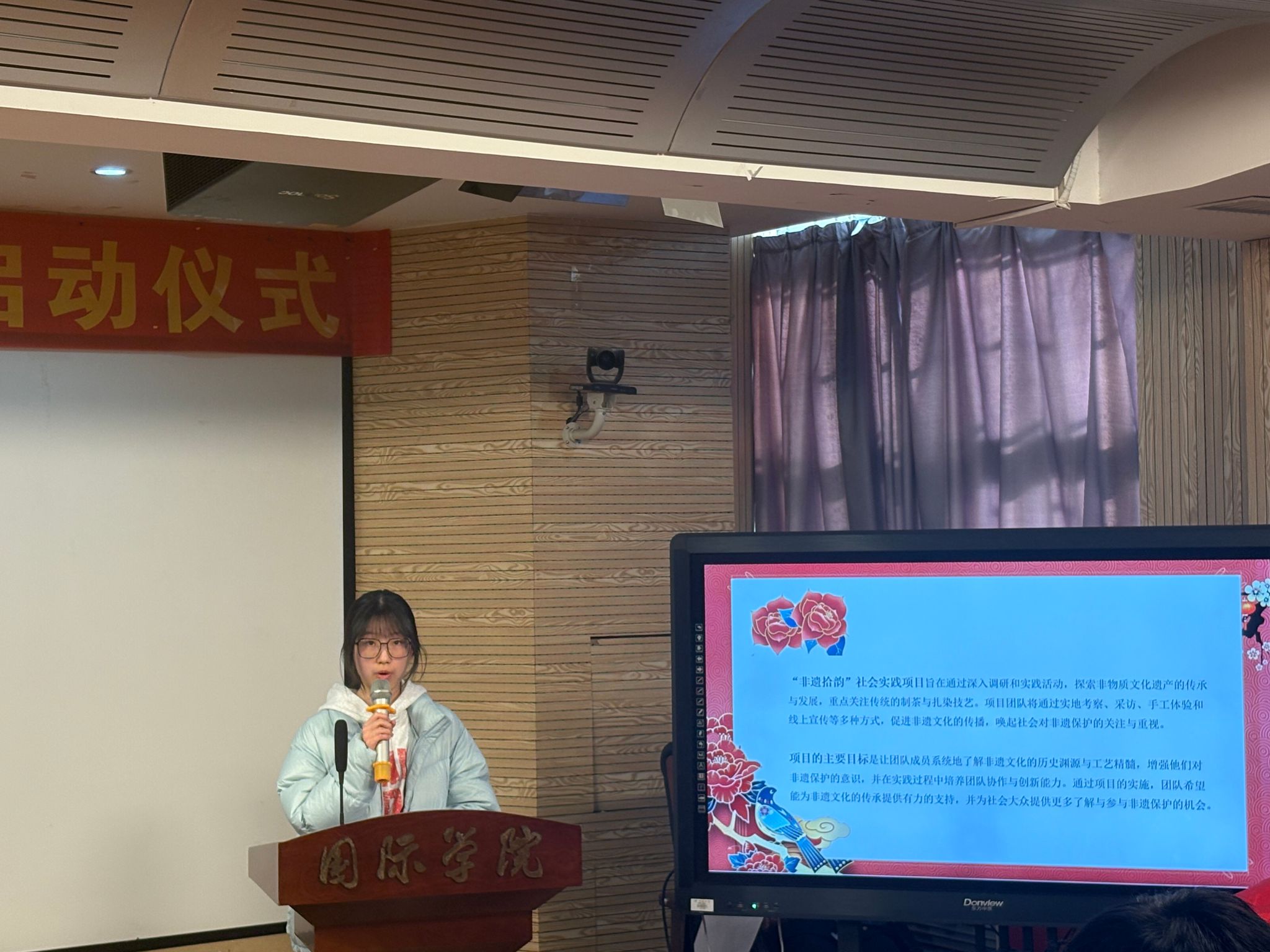 首先,国际学院团委副书记王婉靖宣读2025年国际学院寒假社会实践立项团队名单,国际学院团委学生干部介绍社会实践注意事项,提醒大家在进行社会实践的同时要注意自身安全。