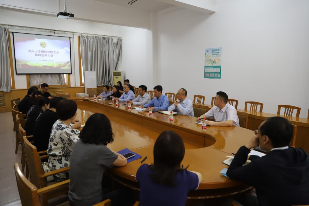 院党委副书记庄琼琼宣读《郑州大学工会委员会关于国际学院工会召开换届大会的批复》。与会人员表决通过了选举办法、工会委员候选人名单和监票人、计票人名,以差额选举无记名投票的方式产生赵强、李伟、张星瑞、王婉靖、张虎林五位同志为新一届工会委员。