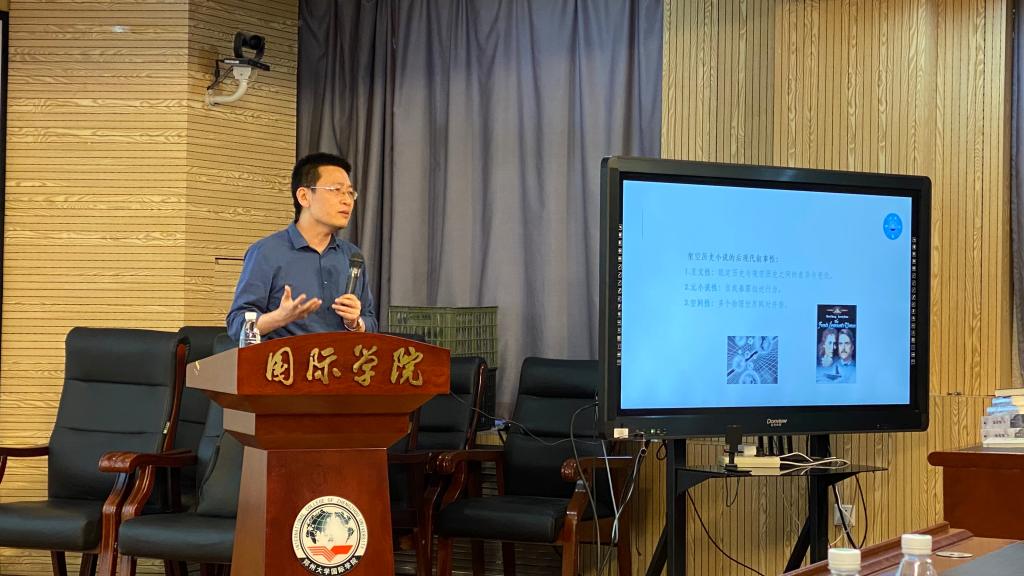 图1-3.上海外国语大学李锋教授为学院师生教授《漫谈中美文学的架空历史小说》