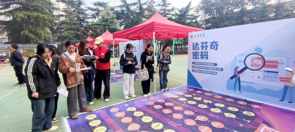 活动现场设置了丰富多样的体验区域,包含“飞跃璀璨人生”、“达芬奇密码”、“个人品牌缔造”、“满满正能量”、“胜任力对对碰”、“新年堡垒攻坚战”、“星光耀我行”、“职业梦工厂”、“加油向未来”和“成就机动挑战赛”十个项目,采用游戏通关体验和沉浸式职业生涯咨询的方式,帮助同学们清晰认知自己的兴趣、能力和性格特点,为职业选择提供科学依据。