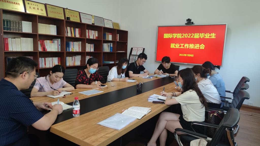 图1.国际学院2022届毕业生就业工作推进会议现场