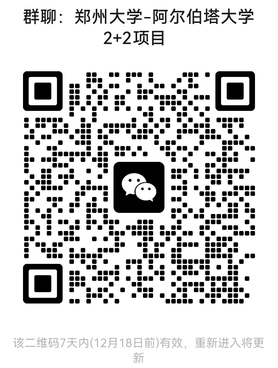 图1.郑州大学-阿尔伯塔大学2+2项目咨询二维码