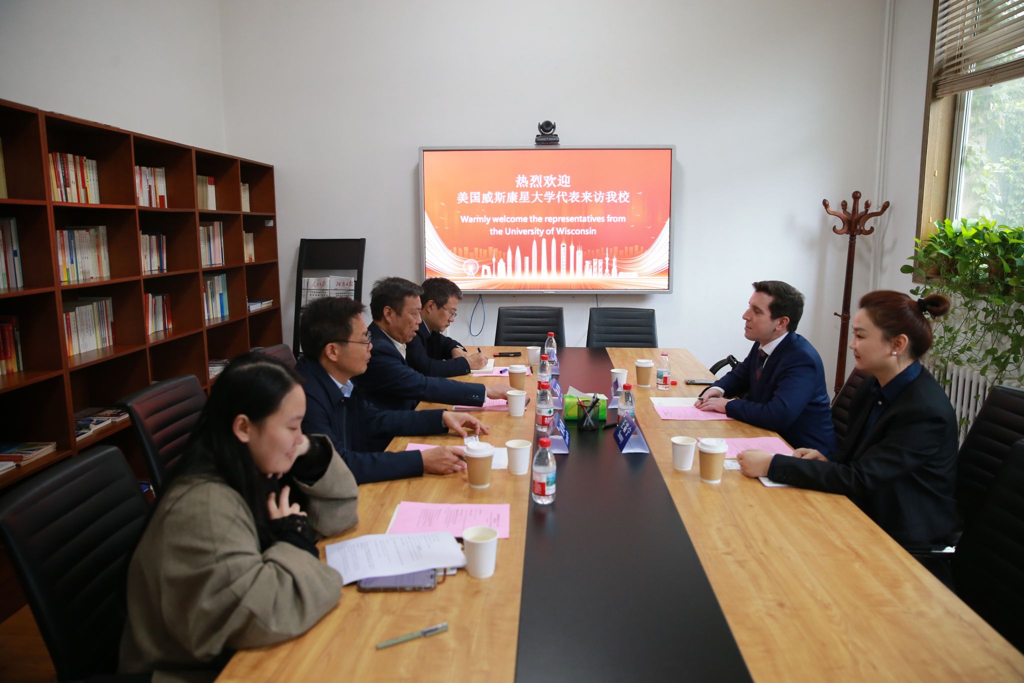 2025年10月10日上午,美国威斯康星大学代表团高等教育联盟项目主管Justin Manners先生及中国办事处代表Sunny Wang女士一行访问郑州大学国际学院。郑州大学国际学院党委书记何建强,国际学院、惠灵顿学院院长陈思坤以及学院有关部门人员出席并参与座谈。