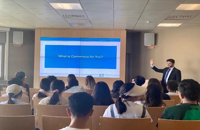 我想说这个项目给我带来许多实际的收获,在这十四天中,通过参观各个世界组织和业界专家的交流,我也更加了解国际形势的现状和趋势,这对我未来的就业和创业都有很大的帮助。参加联合国的暑期培训项目是我学生生涯的一次宝贵的经历,这个项目不仅让我学到很多知识和技能,也让我结识到很多优秀的人才。我相信这次经历会对我的人生产生重要影响,我会将所学所得发挥到最大,为实现自己的理想而奋斗。同时回馈社会,对人类文明的发展做出自己的贡献。