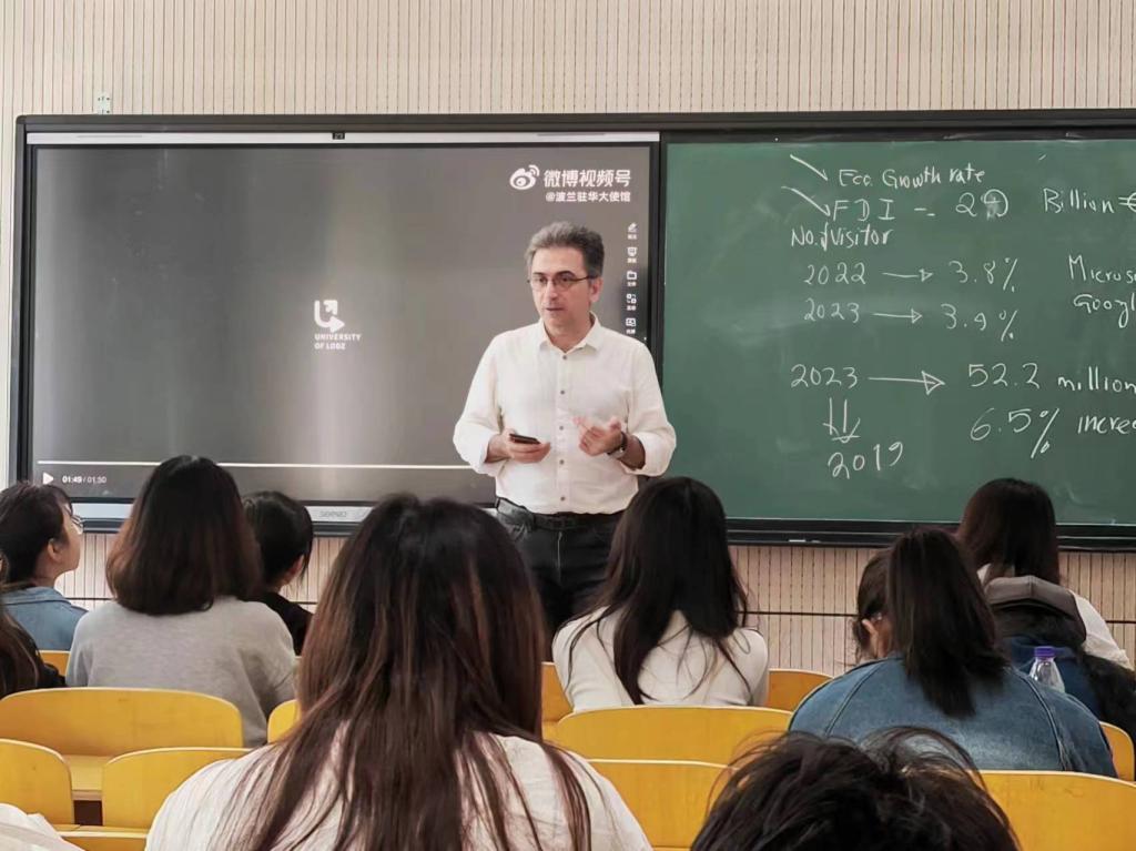 图1.波兰罗兹大学教授为我院学生宣讲交流项目