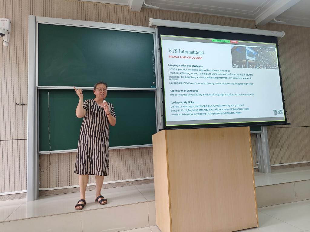 图2.伍伦贡大学ETS教学主任Luqing Wang为我院新生介绍ETS英语学习要求及方法