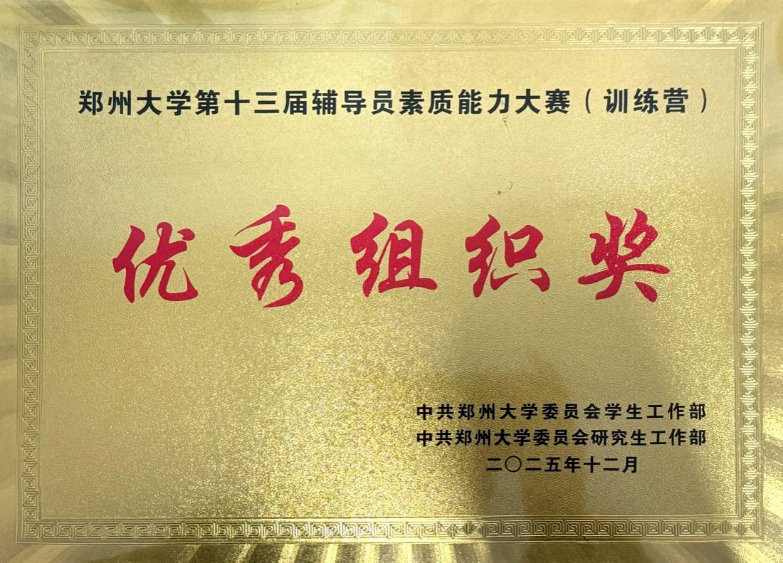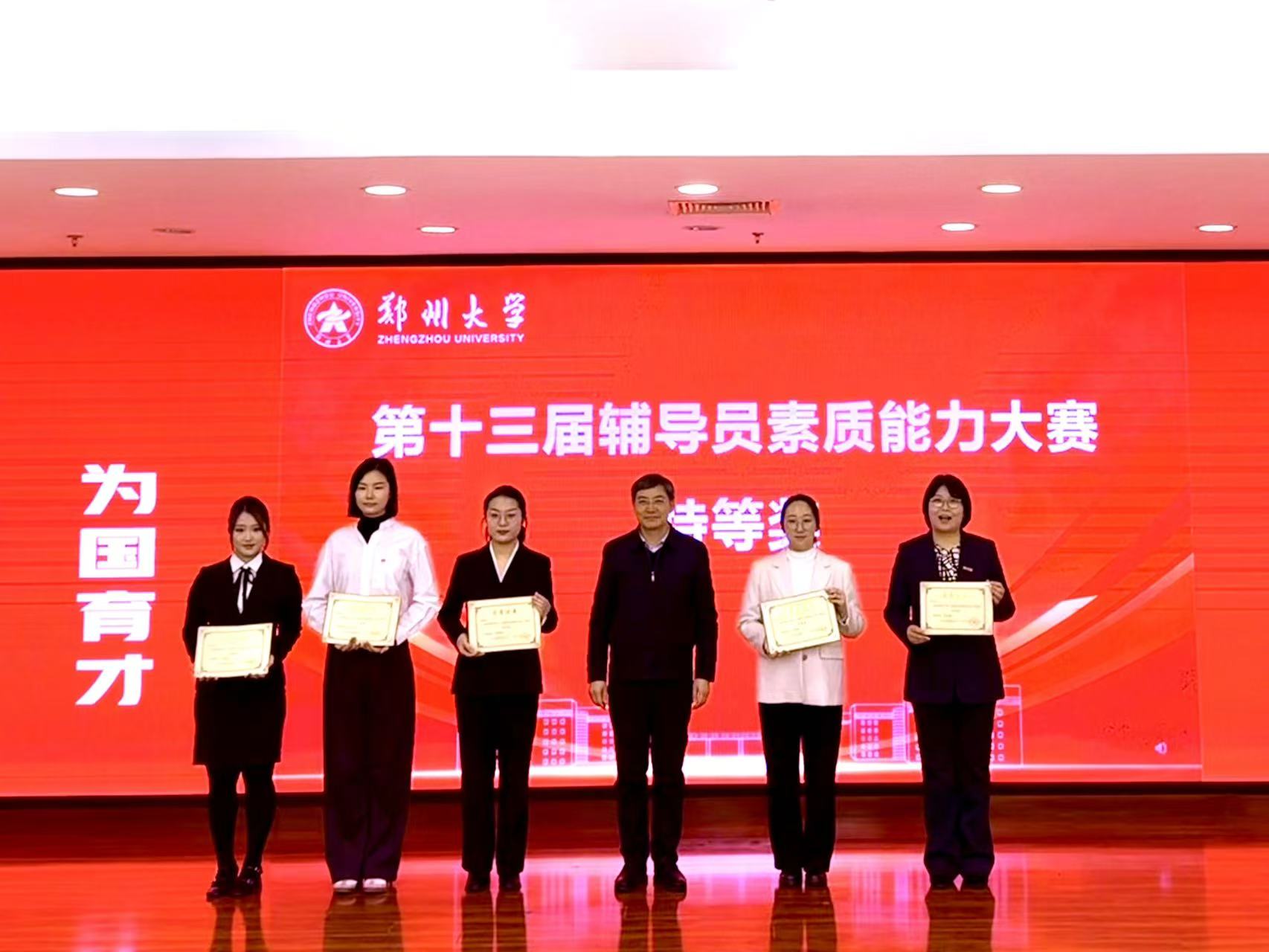 12月19日,郑州大学第十三届辅导员素质能力大赛(训练营)决赛于主校区综合管理中心举办。我院在此次大赛中表现突出,荣获“优秀组织奖”。