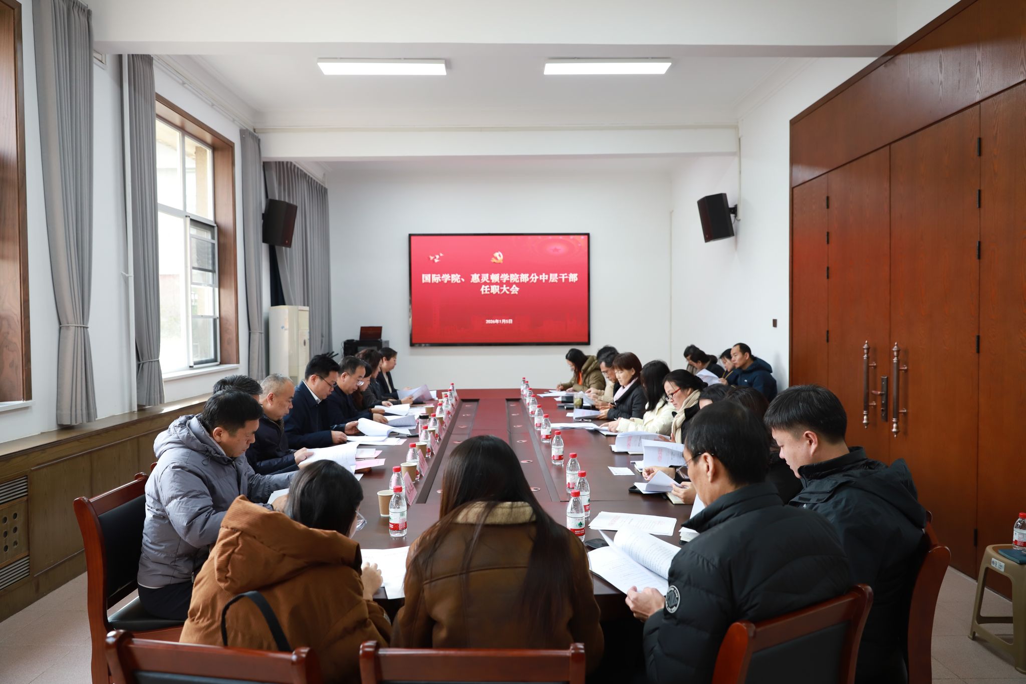 1月5日下午,学院在南校区行政楼第二会议室召开部分中层干部任职大会,学院党政领导班子成员和副科级以上中层干部参加会议。会议由执行学院执行院长、党委副书记刘永杰主持。
