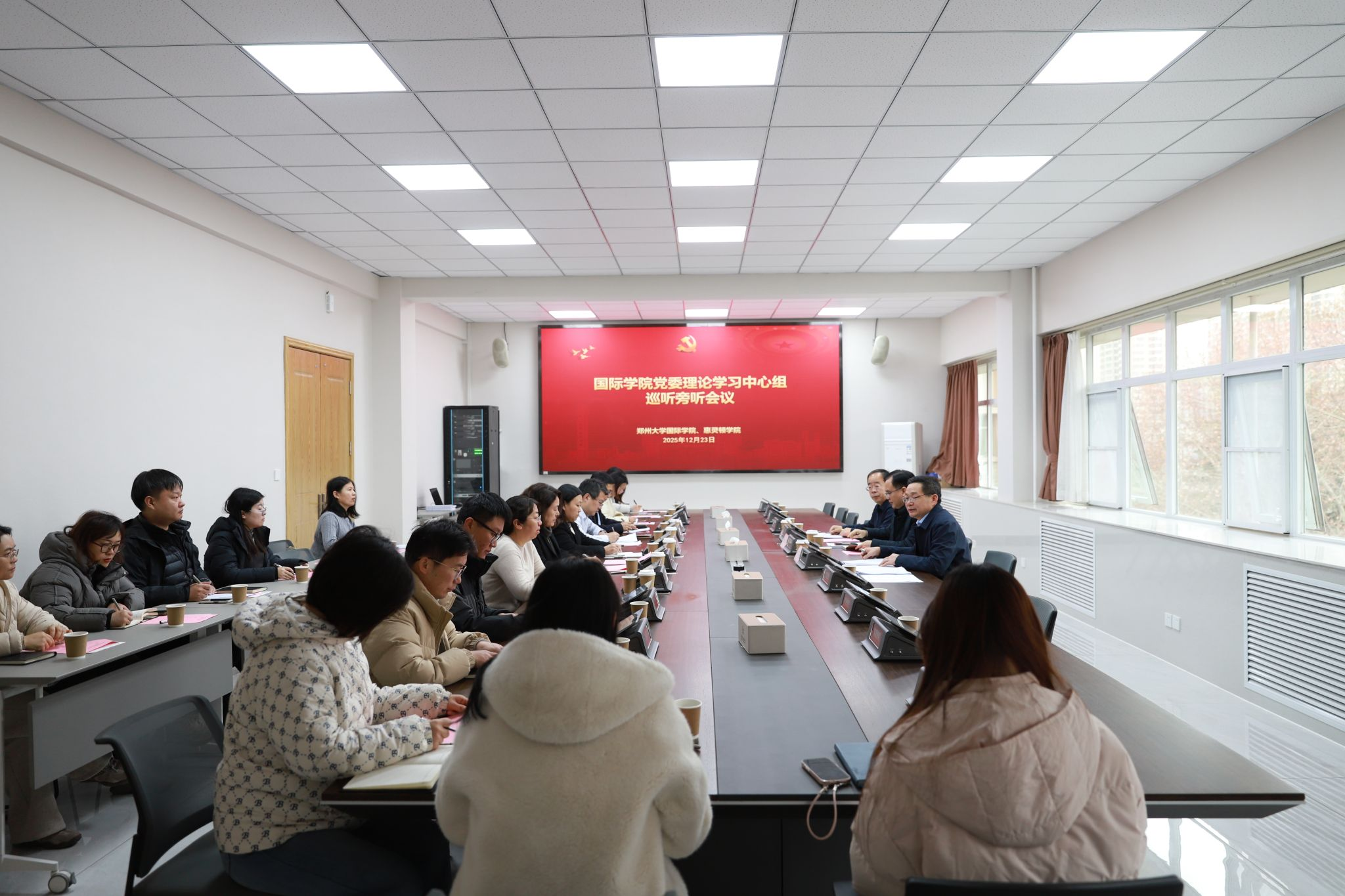 为深入学习宣传贯彻党的二十届四中全会精神,12 月23 日下午,校党委常委、副校长臧双全深入国际学院、惠灵顿学院,巡听旁听党委理论学习中心组专题学习会,并开展实地调研与工作指导。学院领导班子成员、党委理论学习中心组全体成员参加会议,会议由院党委书记何建强主持。