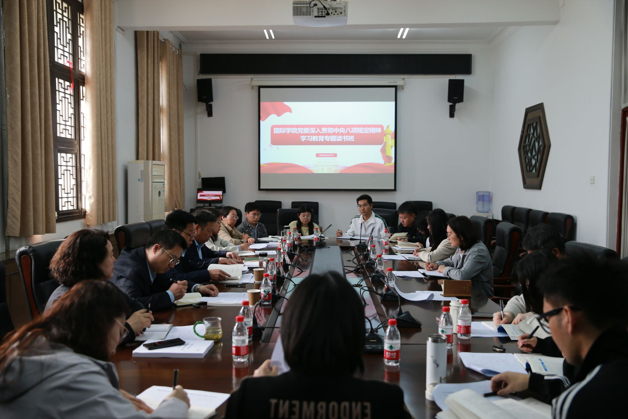 为深入学习贯彻习近平总书记关于加强党的作风建设的重要论述,进一步全面落实中央八项规定及其实施细则精神,近期,国际学院、惠灵顿学院举办深入贯彻中央八项规定精神学习教育读书班。学院全体领导班子、党委理论学习中心组成员参加读书班。