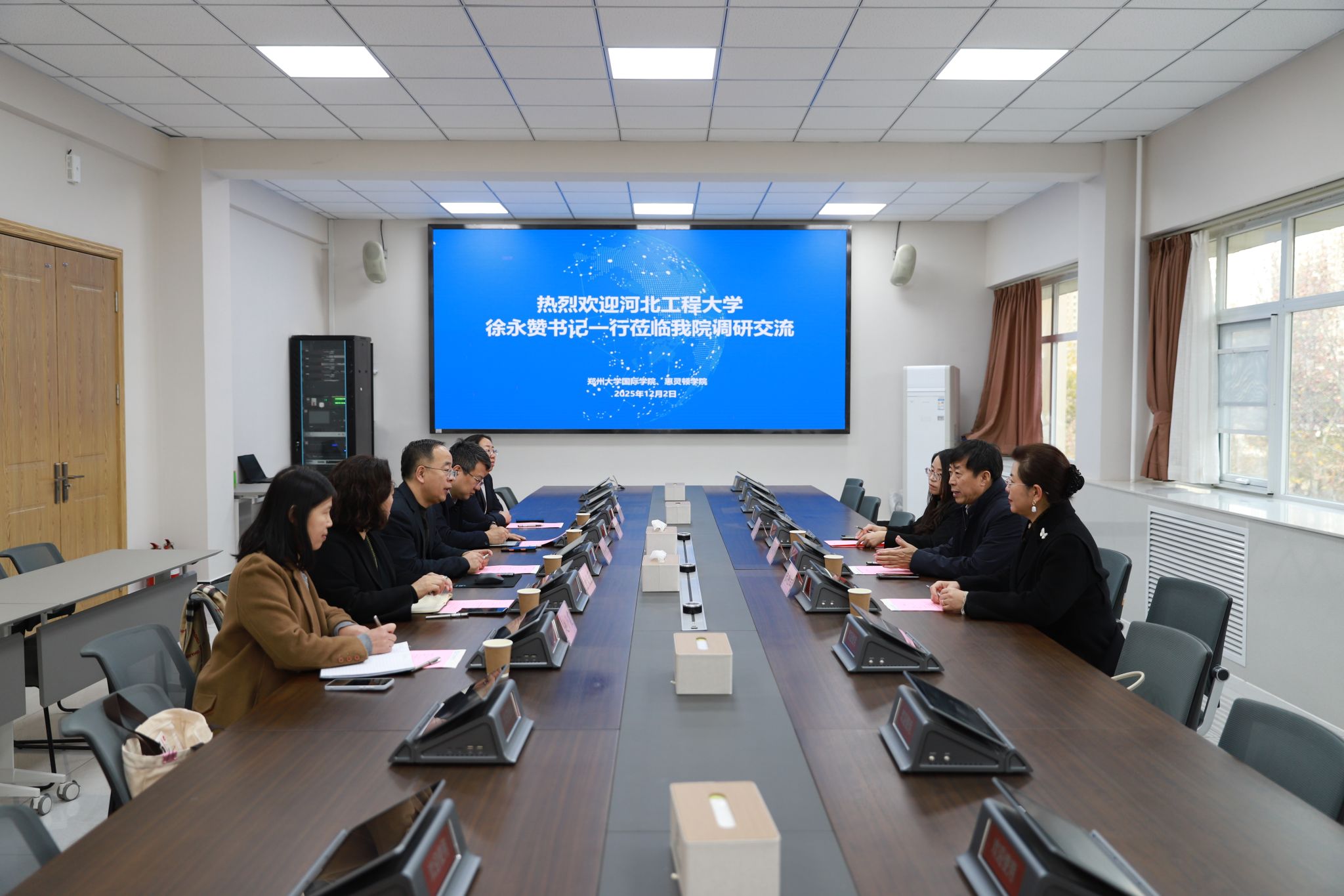 12月2日上午,河北工程大学党委书记徐永赞、国际合作与交流处处长张艳红、国际合作与交流处副处长秦娜一行来学院调研交流。学院执行院长刘永杰,党委副书记兼国际交流与合作处副处长谢亚新,副院长余义芳,副院长贾晓燕出席交流座谈会。