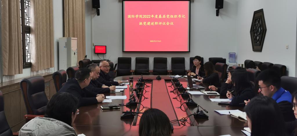 图1.国际学院召开2022年度基层党组织书记抓党建述职评议会议