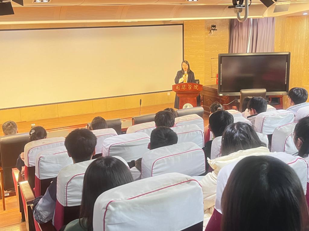 图1.国际学院团委书记郜蕾作开班仪式致辞