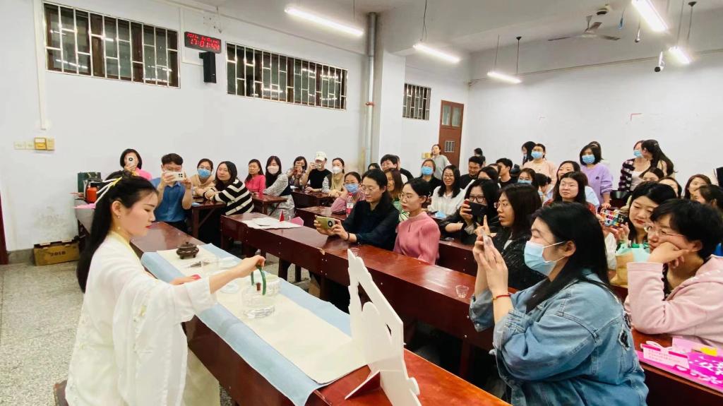 图1.茶艺主讲人为学院教职工讲解茶文化