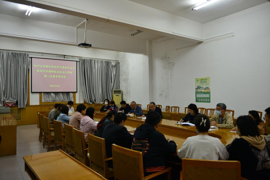 图1.国际学院召开学习贯彻习近平新时代中国特色社会主义思想主题教育第一次集体学习研讨