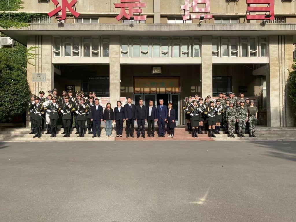 图3.学院领导老师同国旗护卫队合影
