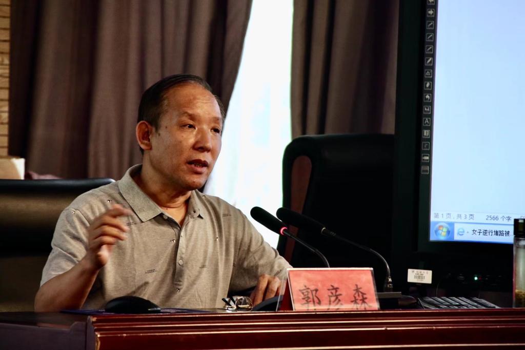 图1.郑州大学马克思主义学院教授郭彦森为我院师生作主题教育学习报告