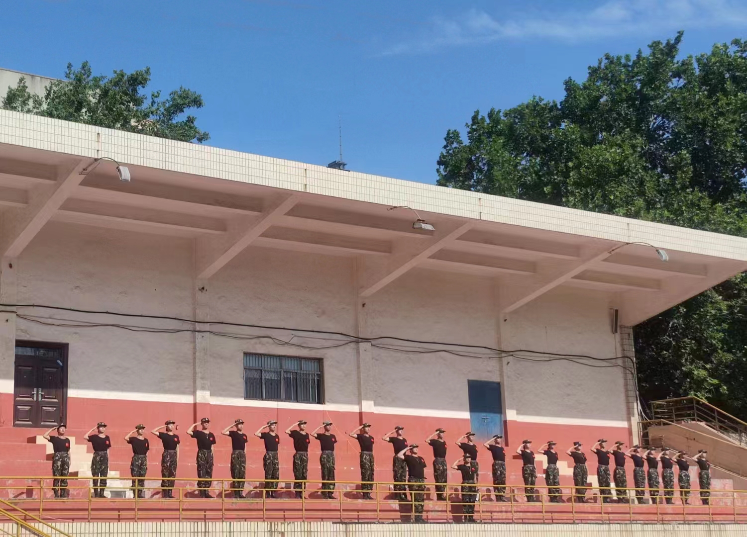 天气炎热,考虑到学生的需求,学院特地在操场和篮球场支起帐篷,并为同学们准备了桶装热水、桶装纯净水和防暑药品,为大家的身体健康提供有力保障。训练期间,学校武装部首长对各个排队进行了巡视检查,向伤病连的同学致以亲切慰问,极大地鼓舞了各连队的士气。