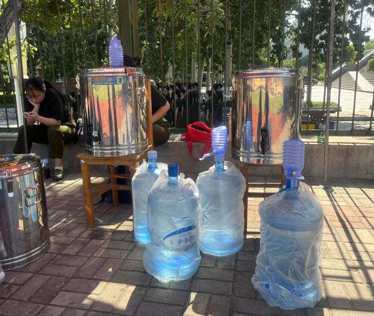 图4-5.学院为军训学生准备桶装水和防中暑药品