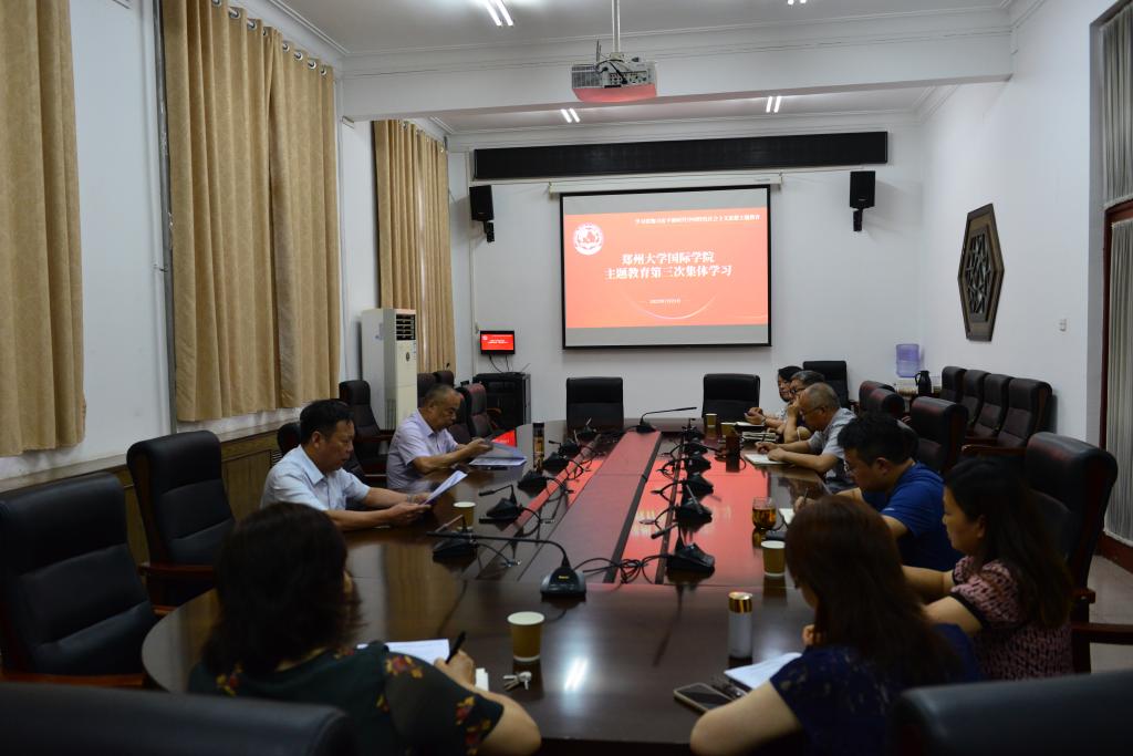 7月21日下午,国际学院在行政楼第二会议室召开学习贯彻习近平新时代中国特色社会主义思想主题教育第三次集体学习研讨。国际学院领导班子及学院主题教育领导小组办公室人员参会,会议由院党委书记李华峰主持。